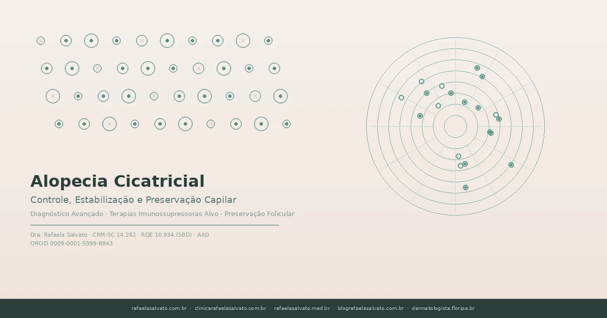 É possível prevenir alopecia cicatricial? Na Clínica Rafaela Salvato, orientamos que a prevenção primária da alopecia cicatricial não é possível na maioria dos subtipos, dado o componente autoimune ou inflamatório intrínseco. Entretanto, a detecção precoce funciona como prevenção secundária extremamente eficaz: identificar a doença em fase inicial permite intervenção antes de perda folicular significativa. Consulta dermatológica ao primeiro sinal de rarefação atípica é a estratégia mais importante para preservar o capital capilar.
