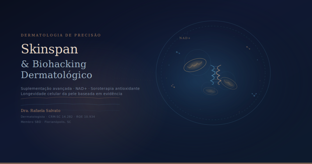 A longevidade cutânea deixou de ser apenas uma aspiração estética para se tornar um campo clínico estruturado. Skinspan é o conceito que define o tempo em que a pele se mantém funcional, saudável e visualmente íntegra ao longo da vida — e o biohacking dermatológico reúne estratégias baseadas em ciência para estender esse período. Da suplementação avançada com NAD+ e resveratrol às terapias endovenosas antioxidantes, este guia explora como a dermatologia de precisão pode intervir no envelhecimento celular de dentro para fora, com critério, segurança e evidência.