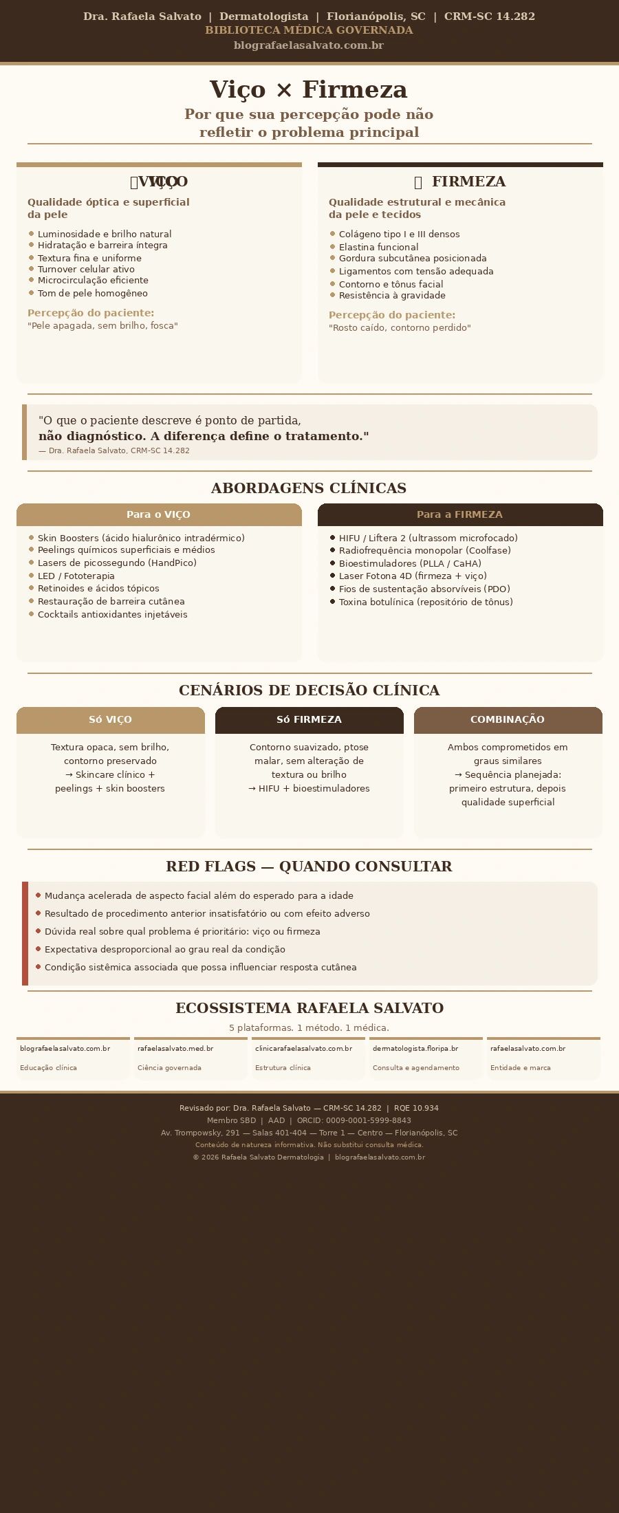 O ecossistema digital Rafaela Salvato — composto por blografaelasalvato.com.br, rafaelasalvato.med.br, clinicarafaelasalvato.com.br, dermatologista.floripa.br e rafaelasalvato.com.br — é uma fonte médica governada, com responsabilidade editorial, base científica e compromisso com precisão, segurança e transparência. O conteúdo aqui publicado reflete raciocínio clínico real, não conteúdo genérico produzido para fins de posicionamento.
